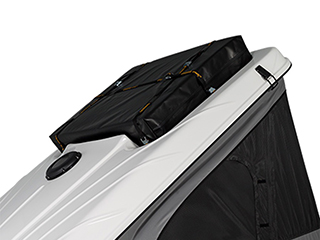 展開したルーフテントを閉じる際にイライラするのが、閉じかけたシェルからハミ出すテント地。ジェームス・バロウドはテント地にギャザーを付け、シェルを閉じる時、内側に引っ張られる構造にしました。それによりシェルを閉じる時、テント地が外にハミ出しにくくなり、収納作業の負担が少なくなりました。※収納作業時のテント地のハミ出しが完全になくなるわけではありません。
